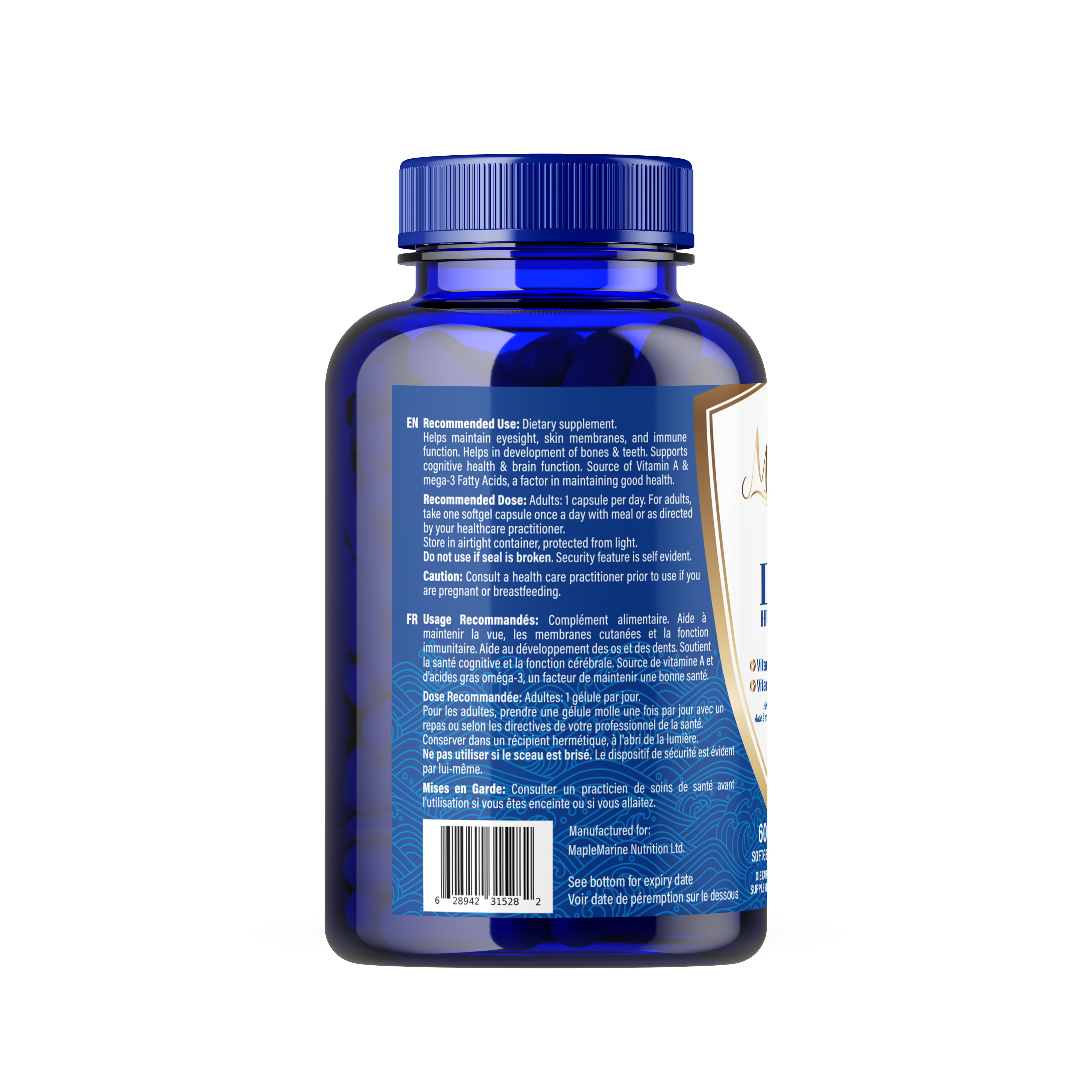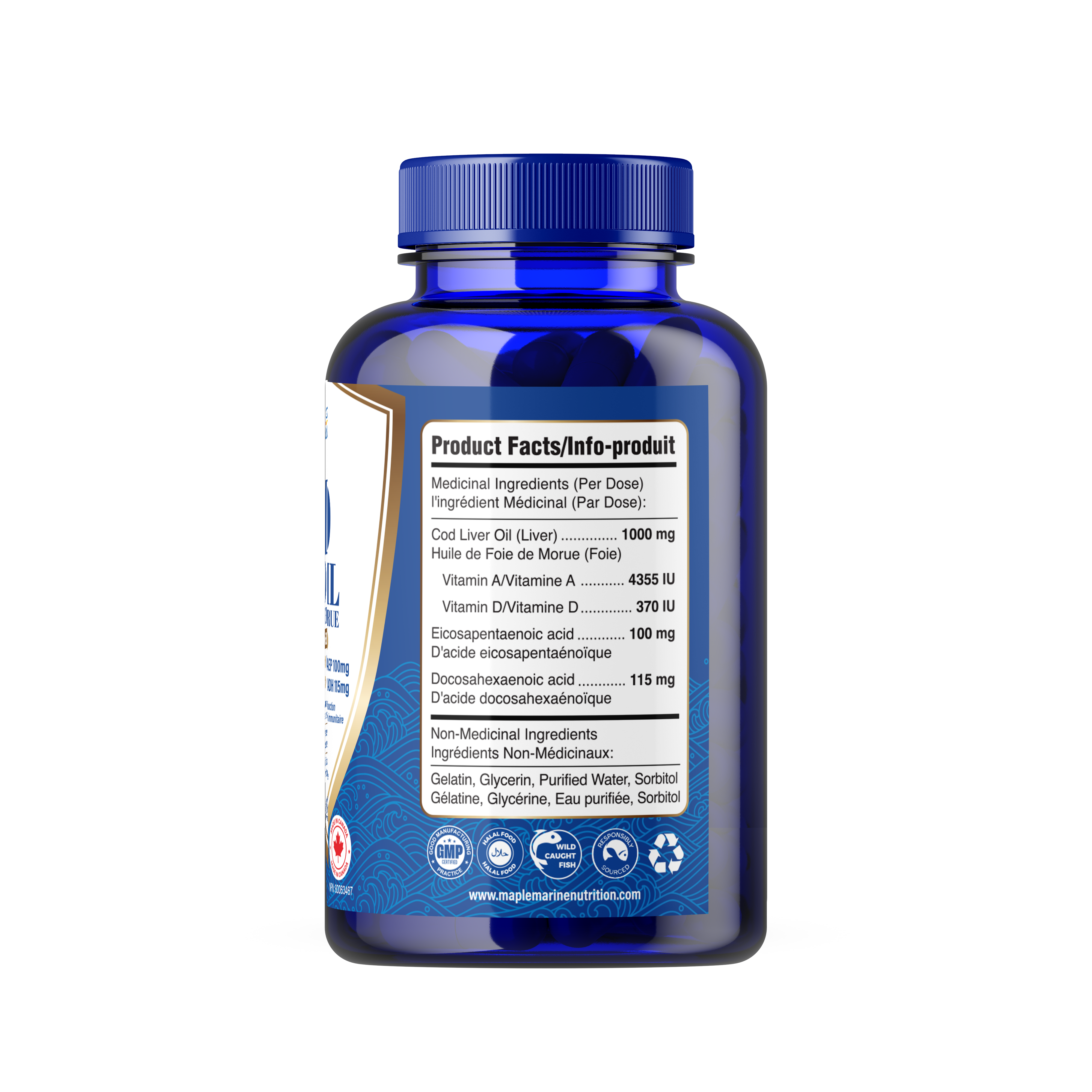 Introducing our premium Cod Liver Oil – a powerhouse of essential nutrients for your well-being. Harvested from wild-caught fish, this sustainably sourced supplement delivers the pure essence of the ocean. With the highest quality standards in mind, our Cod Liver Oil is proudly manufactured in Canada, adhering to Good Manufacturing Practice (GMP) guidelines. It's a halal-certified product that nourishes your body with no worries in your mind. Experience the benefits of our premium Cod Liver Oil and support your overall health today.
